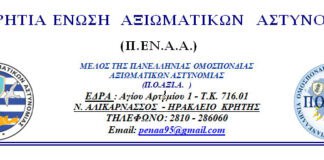 Η Παγκρήτια Ένωση Αξιωματικών Αστυνομίας, καταδικάζει τα βίαια επεισόδια που σημειώθηκαν...