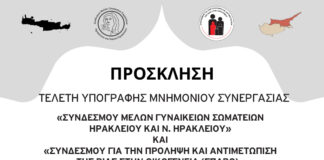 Ο «Σύνδεσμος Μελών Γυναικείων Σωματείων Ηρακλείου και Ν. Ηρακλείου» υπογράφει Μνημόνιο...