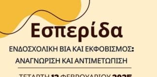 Εσπερίδα με θέμα: “Ενδοσχολική Βία και Εκφοβισμός: Αναγνώριση και Αντιμετώπιση”