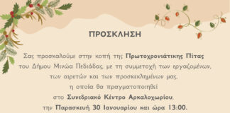 Κοπή Πρωτοχρονιάτικης Πίτας στο Δήμο Μινώα Πεδιάδας – Την Παρασκευή 30...