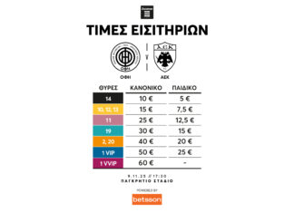 Τα εισιτήρια του αγώνα με την ΑΕΚ (9/11)