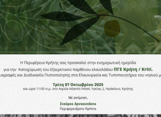 Ενημερωτική ημερίδα της Περιφέρειας Κρήτης για το «Εξαιρετικό Παρθένο Ελαιόλαδο Κρήτη...