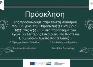 Τελετή Αγιασμού για το Σχολείο Δεύτερης Ευκαιρίας στο Καστέλλι- Την Παρασκευή...