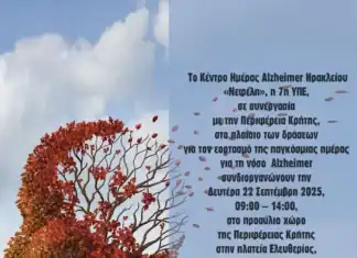 Το Κέντρο Ημέρας Alzheimer Ηρακλείου «Νεφέλη» και η 7η Υγειονομική Περιφέρεια Κρήτης, σε συνεργασία με την Περιφέρεια Κρήτης, συνδιοργανώνουν ενημερωτική εκδήλωση στο πλαίσιο της παγκόσμιας...