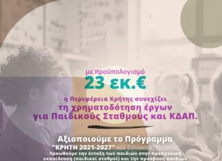 Η Περιφέρεια Κρήτης συνεχίζει τη χρηματοδότηση παιδικών σταθμών και ΚΔΑΠ με...