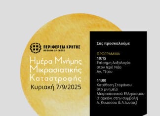 Tην Κυριακή 7 Σεπτεμβρίου 2025, ημέρα Εθνικής μνήμης της γενοκτονίας των Ελλήνων της Μικράς Ασίας από το τουρκικό κράτος, θα πραγματοποιηθούν εκδηλώσεις στο Ηράκλειο.
