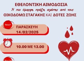 Εθελοντική αιμοδοσία στο αίθριο της Λότζια το Σάββατο 15-02-2025