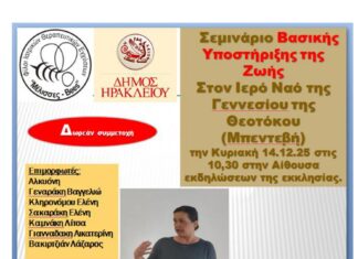 Σεμινάριο Βασικής Υποστήριξης της Ζωής διοργανώνουν η Αντιδημαρχία Εθελοντισμού του Δήμου Ηρακλείου και οι «Φίλοι Ιατρικών Θεραπευτικών Εντόμων – Μέλισσες» την Κυριακή 14 Δεκεμβρίου...