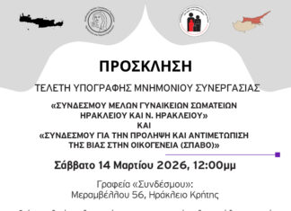 Ο «Σύνδεσμος Μελών Γυναικείων Σωματείων Ηρακλείου και Ν. Ηρακλείου» υπογράφει Μνημόνιο...