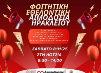 Το Σάββατο 8 Νοεμβρίου 2025 θα πραγματοποιηθεί εθελοντική αιμοδοσία στο κέντρο της πόλης του Ηρακλείου και συγκεκριμένα στο αίθριο της Λότζια από τις 09:30...