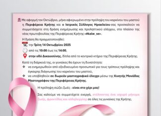 Με αφορμή τον Οκτώβριο, μήνα αφιερωμένο στην πρόληψη του καρκίνου του μαστού, η Περιφέρεια Κρήτης και ο Ιατρικός Σύλλογος Ηρακλείου σας προσκαλεί να συμμετάσχετε...