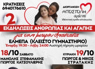 Δύο μουσικές εκδηλώσεις γεμάτες αγάπη, ανθρωπιά, αλληλεγγύη αλλά πάνω απ' όλα σεβασμό θα γεμίσουν το Σαββατοκύριακο 18 -19 του Οκτωβρίου το κλειστό γυμναστήριο του...