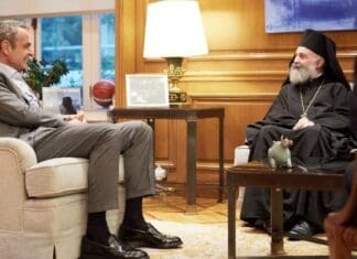 Με τον Αρχιεπίσκοπο Αυστραλίας κ. Μακάριο συναντήθηκε χθες στο Μέγαρο Μαξίμου ο πρωθυπουργός, Κυριάκος Μητσοτάκης, σύμφωνα με ενημέρωση από το γραφείο τύπου του πρωθυπουργού.
