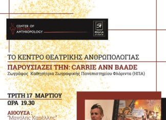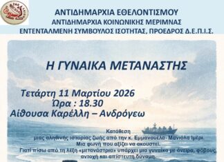 Τετάρτη 18 Μαρτίου στις 19:00 στην αίθουσα Μ. Καρέλλη
