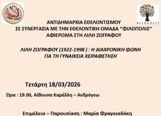 «Λιλή Ζωγράφου: H διαχρονική φωνή για τη γυναικεία χειραφέτηση» είναι ο τίτλος της εκδήλωσης που διοργανώνει...
