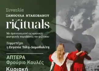 Η Περιφέρεια Κρήτης – Περιφερειακή Ενότητα Χανίων, ο Δήμος Χανίων και ο Δήμος Αποκορώνου συνδιοργανώνουν τη Συναυλία Το Riζituals της Ξανθούλας Ντακοβάνου, στο Φρούριο Κουλές – Άπτερα, την Κυριακή 7 Σεπτεμβρίου 2025, ώρα 21.00,...