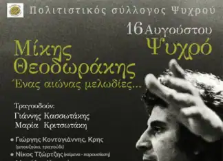 Στο πλαίσιο των καλοκαιρινών εκδηλώσεων ” ΚΖ’ ΔΙΚΤΑΙΑ 2025″ του Πολιτιστικού Συλλόγου Ψυχρού ” ο Ξένιος Ζευς”, με την στήριξη της Περιφέρειας Κρήτης, διοργανώνει μια...