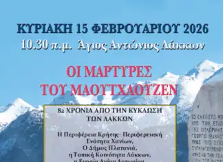 Θα πραγματοποιηθεί στον Ιερό Ναό Αγίου Αντωνίου στους Λάκκους του Δήμου Πλατανιά, την Κυριακή 15 Φεβρουαρίου 2026 και ώρα 10:30 π.μ.