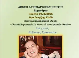 Σεμινάριο με θέμα τα παραδοσιακά γλυκά της Κρήτης διοργανώνει η Λέσχη Αρχιμαγείρων Κρήτης την ερχόμενη Πέμπτη 19 Φεβρουαρίου 2026.