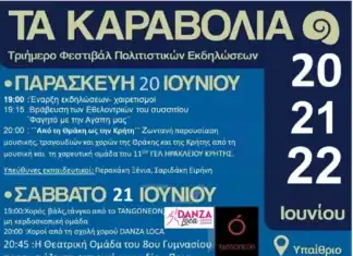 Ο Πολιτιστικός Σύλλογος Καμινίων, διοργανώνει, με την υποστήριξη της Περιφέρειας Κρήτης, τριήμερο φεστιβάλ «Τα Καραβόλια», από χθες Παρασκευή 20 Ιουνίου έως και την Κυριακή...