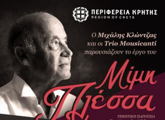 Συναυλία-αφιέρωμα στον αξέχαστο Μίμη Πλέσσα θα πραγματοποιηθεί με την στήριξη της Περιφέρειας Κρήτης οργανωμένη από τον Μιχάλη Κλώντζα και την Λουκίλα Καρρέρ-Πλέσσα, σύζυγο του...